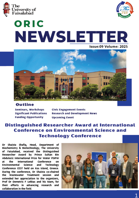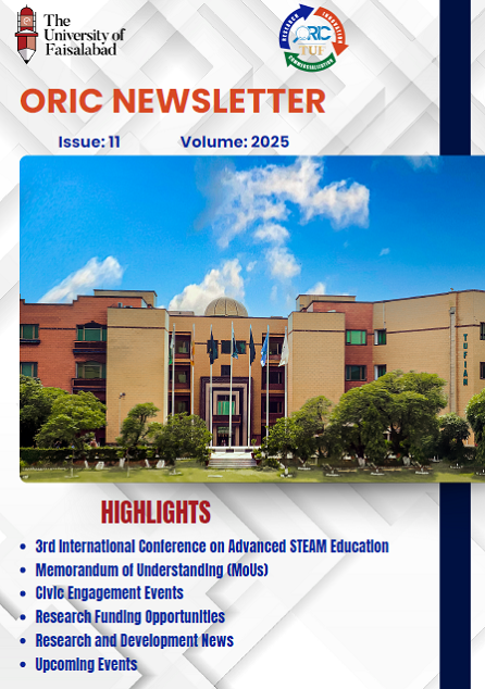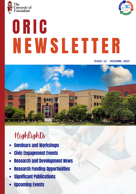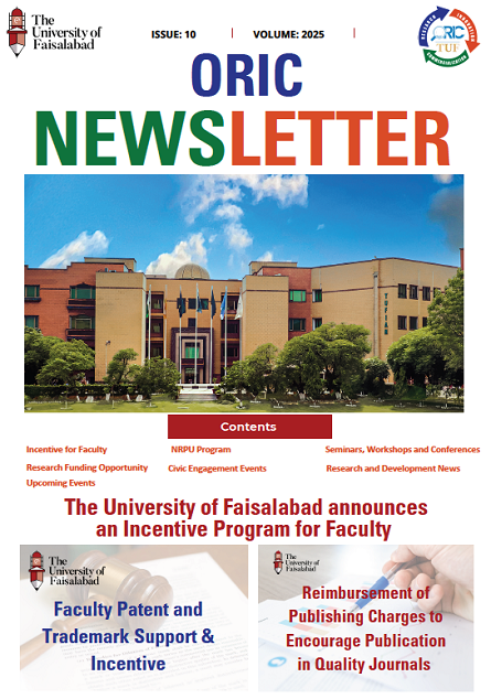 Office of Research, Innovation and Commercialization (ORIC) at The university of Faisalabad (TUF) publishes Newsletter on Monthly basis to share TUF R&D activities, initiatives, achievements, National/International research funding opportunities and scientific & academic News.